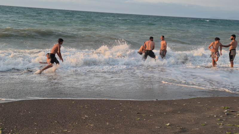 İlk defa denize gelen 10 yaşındaki Şehmuz Atılmış ise; "Dalgalı ama denizin tadını çıkartıyoruz. İlk defa denize geldim. Dalgalardan korkmuyorum" dedi.