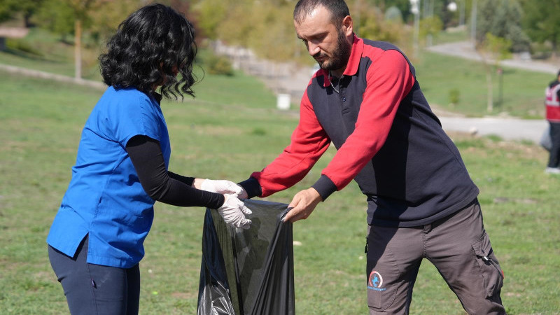 Atatürk Devlet Hastanesi sağlık personeli Bahçeşehir Yeşil Vadi'de temizlik yaparken çevre kirliliğinin halk sağlığı açısından önemine dikkat çekti.