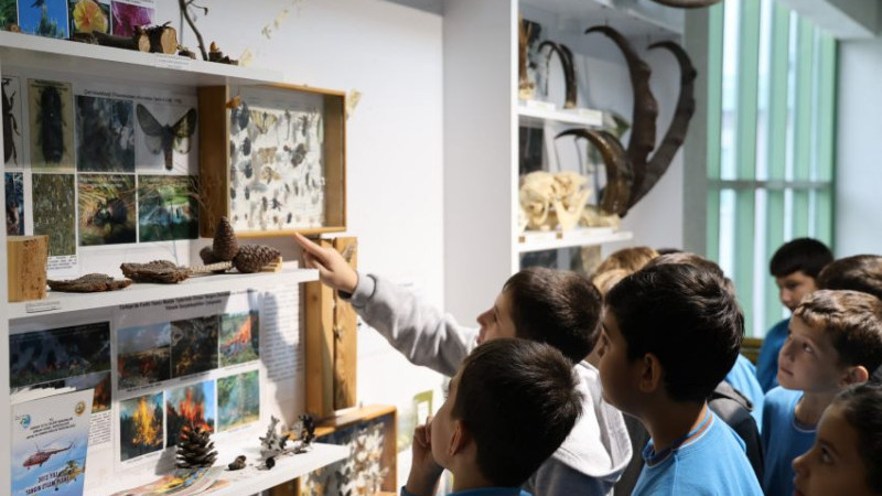 Orman Fakültesi akademisyenleri rehberliğinde gerçekleşen gezi kapsamında minik öğrenciler, çeşitli kuş, memeli ve sürüngen türlerini büyük bir merakla inceleyerek hayvanların doğal yaşam alanları, beslenme biçimleri ve ekosistemdeki önemli rollerine dair detaylı bilgiler aldı. Hayvanların korunması ve yaşam alanlarının önemi hakkında farkındalık kazanan öğrenciler herbaryum ziyaretinde, Orman Fakültesi’nin bitki koleksiyonunda yer alan çeşitli türleri inceleyerek, bitkilerin yapısı, sınıflandırılması ve doğadaki işlevleri hakkında bilgiler edindi.