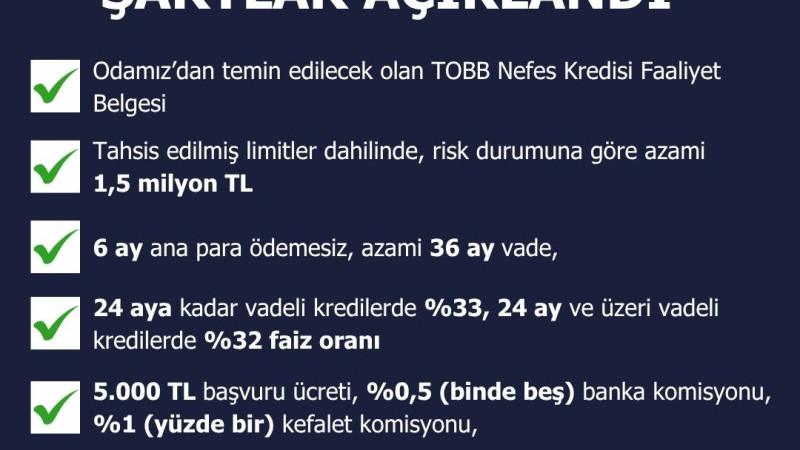 TOBB NEFES KREDİSİNDE ŞARTLAR AÇIKLANDI
