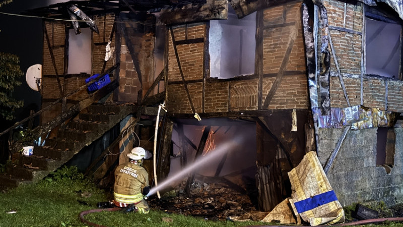 Düzce'de, iki katlı evde çıkan yangın itfaiye ekiplerince söndürüldü, yangında ev kullanılamaz hale geldi.