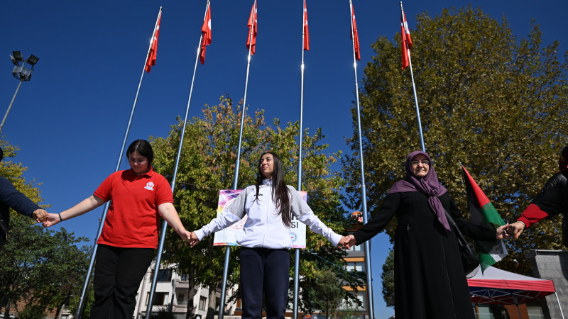 Düzce'de AK Parti Kadın Kolları Teşkilatı, ülke genelinde Gazze'deki mazlumları ve insanlığın onurunu temsil edecek zincir kurmak için "Gazze için Sessiz Çığlık" etkinliğinde bir araya geldi.