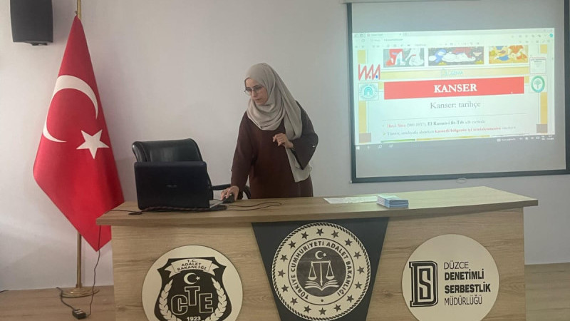 Düzce’de kanserle mücadele etmek amacıyla çalışmalar sürüyor. Bu kapsamda, Düzce İl Sağlık Müdürlüğü Halk Sağlığı Hizmetleri Başkanlığı tarafından, "Ulusal Kanser Haftası" nedeniyle, Düzce Denetimli Serbestlik Müdürlüğünde seminer programı düzenlendi.