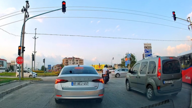 Düzce’de kırmızı ışık ihlali yapmak için arkadaşından yardım isteyen sürücü araç içi kamerasına yakalandı. Sürücünün güldüren halleri ile ışık ihlali yaptığı anlar an be an kaydedildi.