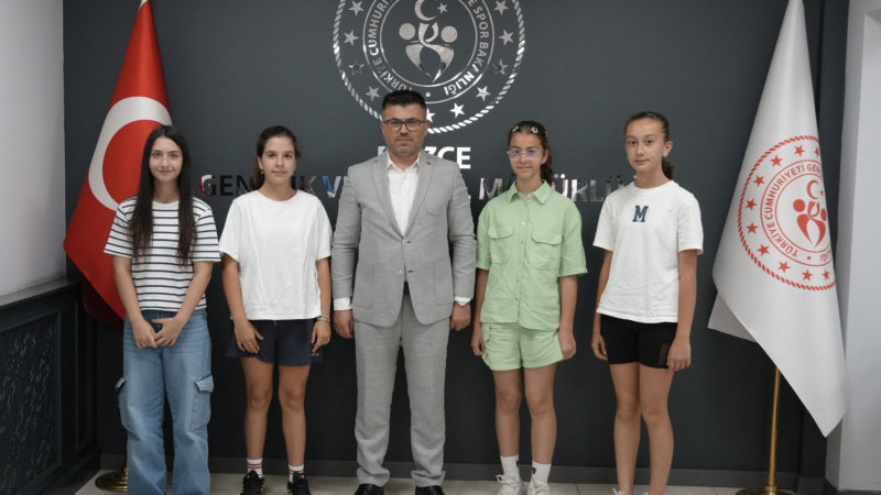 Okul Sporları Küçük Kızlar Tenis Türkiye Şampiyonası’nda dereceye giren Mustafa Açıkalın Ortaokulu sporcuları, Düzce Gençlik ve Spor İl Müdürü İsa Yazıcı’yı ziyaret etti.
