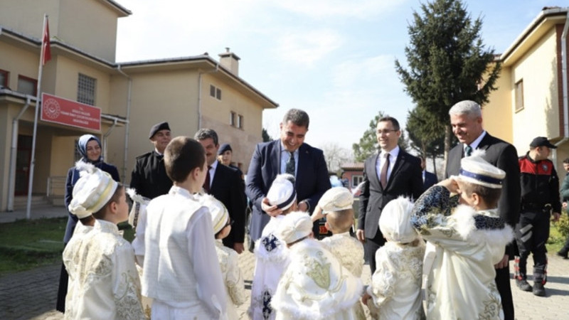 Düzce'de devlet korumasındaki çocuklar, düzenlenen sünnet töreni dolayısıyla valiliğin TOGG marka aracına ve il protokolünün makam otomobillerine binerek şehir turu attı.